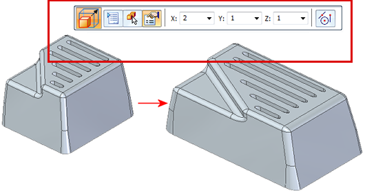 在做產(chǎn)品設(shè)計(jì)時(shí)我們經(jīng)常會(huì)遇到需要改變零件大小的情況。此時(shí)可通過縮放體命令來實(shí)現(xiàn)。該命令支持所有方向均勻縮放,或者通過控制 X、Y 和 Z 方向不同縮放因子進(jìn)行不均勻縮放。