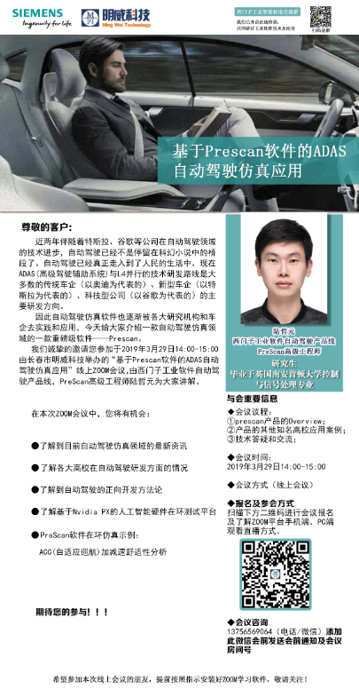 主講嘉賓:陸老師-西門子工業(yè)軟件自動駕駛產(chǎn)品線,PreScan高級工程師陸哲元,研究生畢業(yè)于英國南安普頓大學(xué)控制與信號處理專業(yè)。