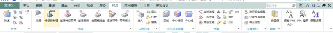 接下來和我一起感受一下,首先進(jìn)入nx軟件,應(yīng)用模塊點(diǎn)擊PMI,PMI工具條自動(dòng)彈出。