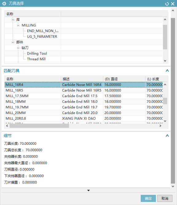 在刀具細(xì)節(jié)里,可以方便的查詢每把刀具的詳細(xì)參數(shù),包括直徑、R角、刀長等。還可以分類成車刀、銑刀、鉆刀等。