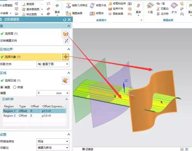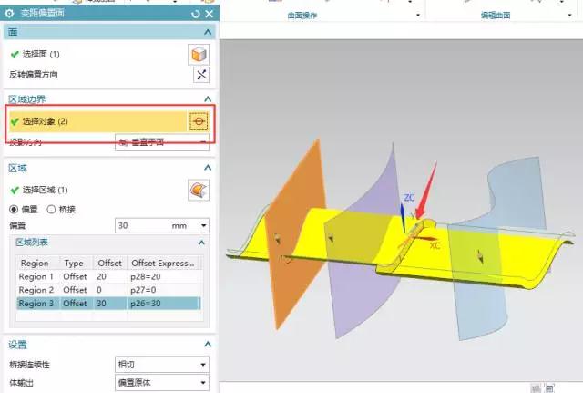 選擇黃色的面為被偏執(zhí)的面,然后選擇藍(lán)色的面為區(qū)域邊界