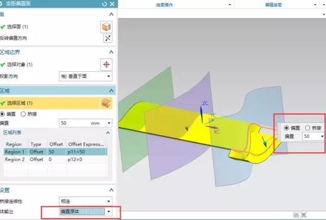 然后再區(qū)域列表中選擇需要偏執(zhí)的面,輸入偏執(zhí)距離,可輸入正負(fù),或者直接點擊黃色面上的箭頭直接輸入,體輸出選擇偏執(zhí)原體。