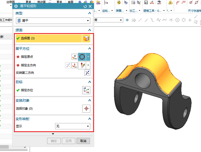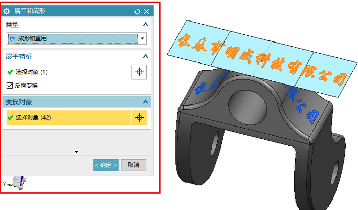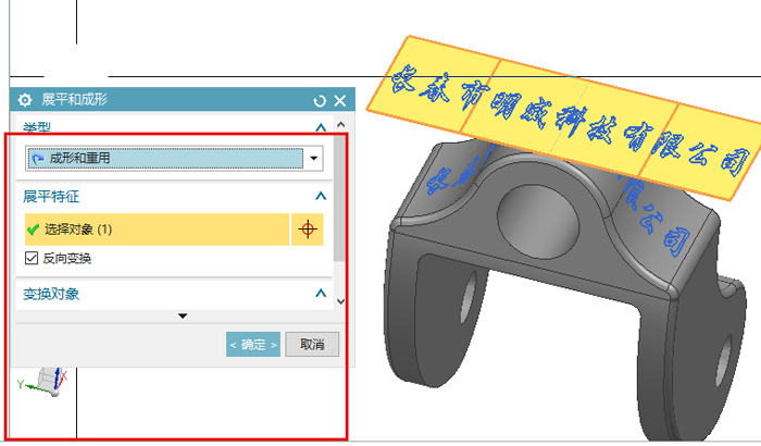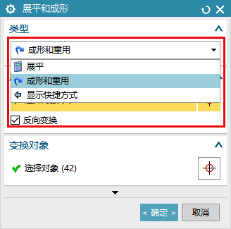 5點擊展平與成形命令 選取成形和重用。 6選擇展平特征