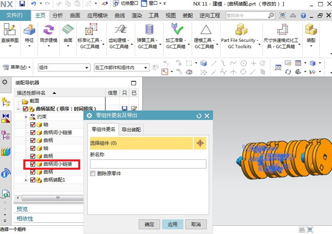在做裝配的時(shí)候很多朋友都有這樣的疑惑,裝配之前可能不知道某些零件后續(xù)會(huì)不會(huì)用到,或者命名就隨便給了一個(gè)名字。隨著后期產(chǎn)品的不斷修改,原來(lái)的名字對(duì)于后續(xù)的工作產(chǎn)生了很大影響,查找起來(lái)十分不方便,就想把名字換掉,但是修改名字后,總裝配又無(wú)法加載了。遇到這種情況我們可以應(yīng)用一個(gè)在UG中很容易被大家忽略的命令來(lái)幫我們完成重命名,就是GC工具箱—GC數(shù)據(jù)規(guī)范—其他工具—重命名和導(dǎo)出組件這個(gè)命令。這個(gè)命可將裝配里的零件名稱和已經(jīng)建立的文件名稱進(jìn)行修改同時(shí)可以繼承裝配關(guān)系非常好用。