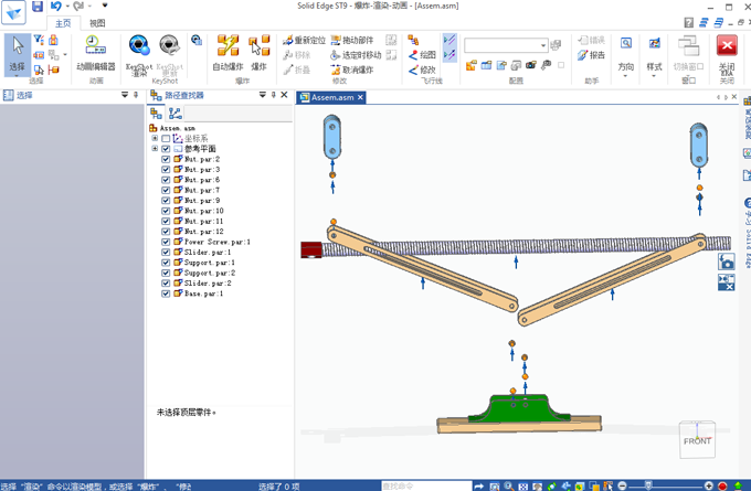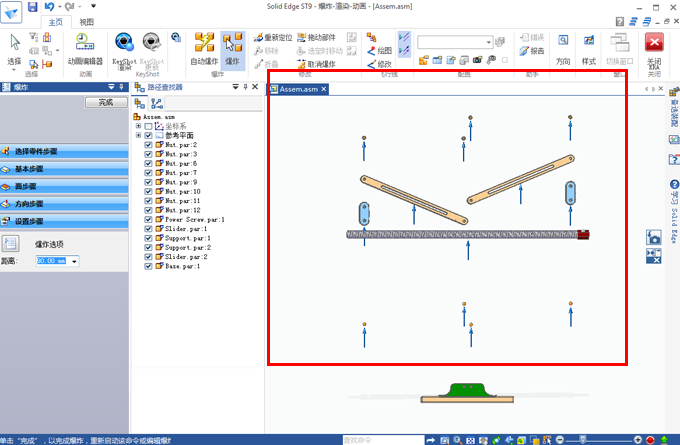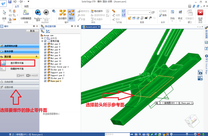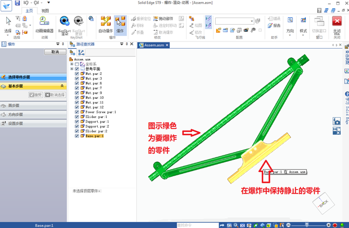 分別選擇所要爆炸的零件和在爆炸中保持靜止的零件