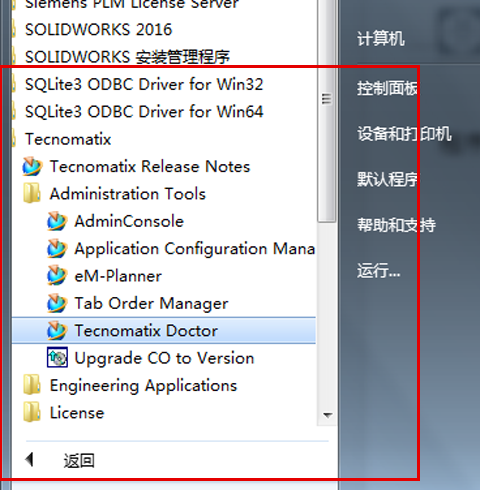 然后我們找到Administration Tools文件夾下的Tecnomatix Doctor這一應(yīng)用程序,并點擊運行。