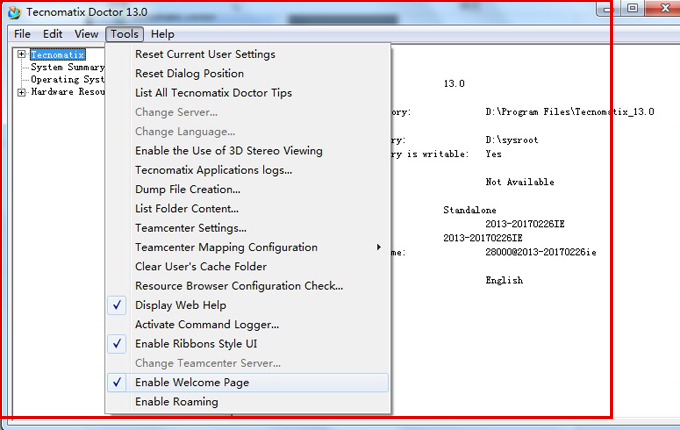 接著,選中第一項Tecnomatix,然后點擊上面的Tools命令,找到Enable Welcome Page選項。