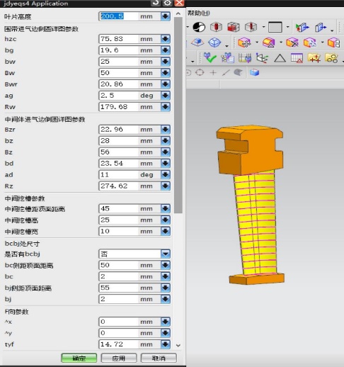 l 多種不同類型的葉片模型,用一個(gè)對話框完成參數(shù)輸入,模型自動生成。